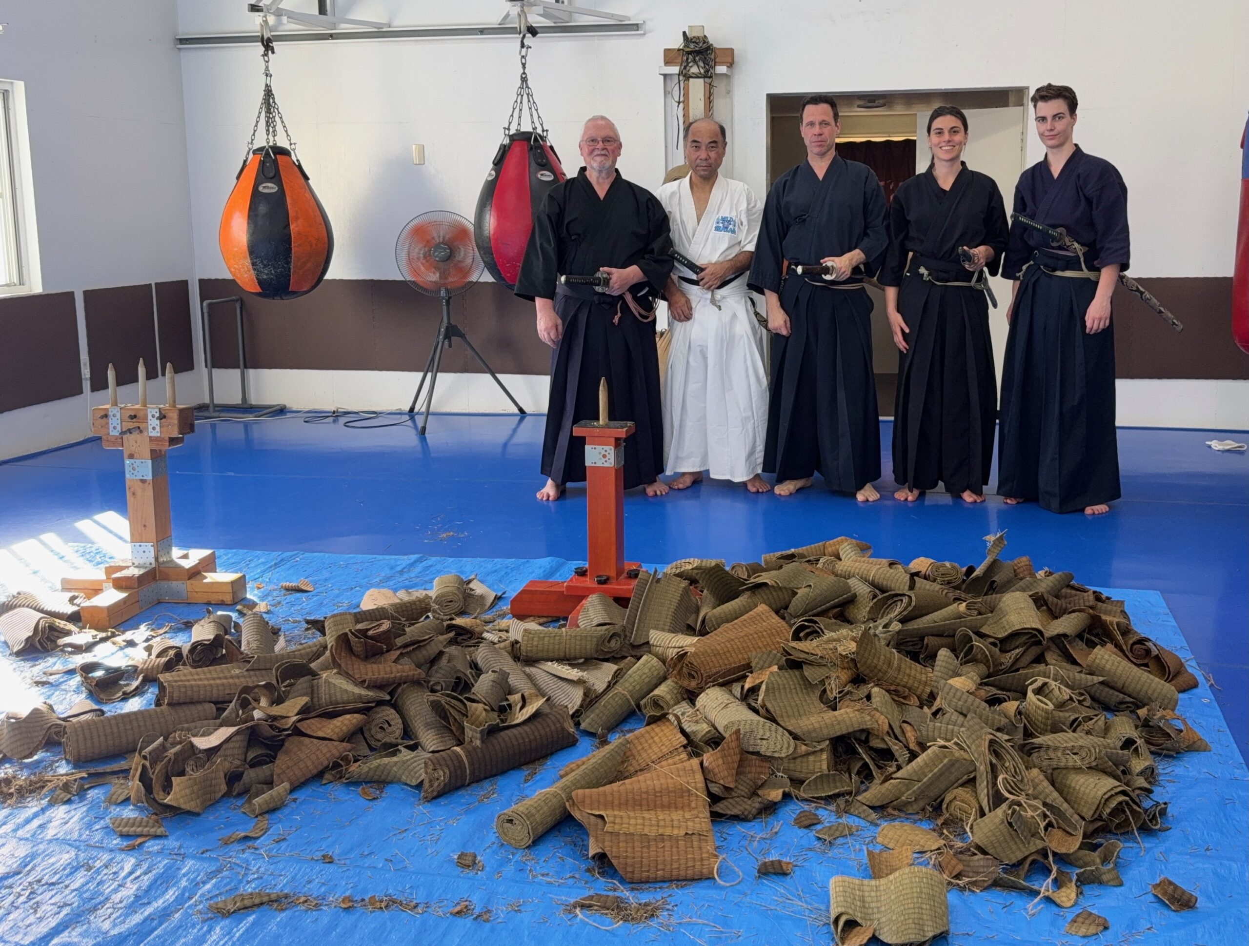 Es folgten seit 2020 jährlich 3 Trainingsaufenthalte, in denen mir immer größere Teile des besondere Kata- und Technik-Repertoire vermittelt wurden. Hamamoto Sensei hat sich neben seinem Familienstil Hachiman Ryu und dem Mugai Mushoukai Ryu weiteren bedeutsamen Kata anderen Stile bedient. So entstand eine wertvolle Sammlung. Auch Schnittteste oder öffentliche Vorführungen an zusammengerollten Tatamimatten finden regelmäßig in Okinawa statt. Wir regelmäßig nach Okinawa Reisende befinden uns in der Situation, nicht durchgehend am dortigen Training teilhaben zu können. Also müssen wir Wege finden, möglichst viele Informationen aus den Unterrchtseinheiten aufzunehmen und am Leben zu erhalten. Durch das eigene Training zurück in der Heimat, haben wir dann Zeit, uns mit den hochdosierten und verdichteten Infomationen zu verbessern. Dadurch zeigen wir unseren Lehrern beim nächsten Besuch auch unsere Art der Wertschätzung dessen, was sie uns geben.