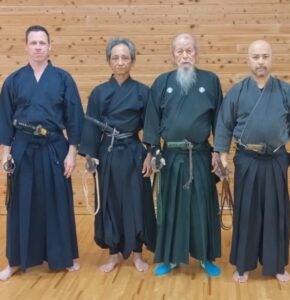 Im Jahr 2025 erlangte ich in Okinawa die Graduierung zum 3. Dan. Damit einher geht die Erlaubnis, die beiden Stilrichtungen Koden Hachiman Ryu Jissen Battoujutsu und Mugai Mushoukai Ryu, in denen Hamamoto Sensei auch Soke ist, offiziell zu vertreten und zu unterrichten.