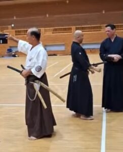 Im September 2019 betrat ich das Budokan mit der oberen Etage als Ziel. Hier fand das morgendliche Instruktorentraining bei Oshiro Shihan statt. Im Vorbeigehen schaute ich flüchtig in den Dojoraum der unteren Etage und sah einen älteren Sensei Iaido mit nur einem Schüler trainieren. Ich selbst beschäftige mich seit vielen Jahren mit Muso Shinden Ryu Iaido unter Cornelius Lockau Sensei. Hamamoto Sensei sah mich, nahe der Eingangstüre stehend, seinen Unterricht beobachten. Er drehte sich daraufhin zu mir und verbeugte sich.